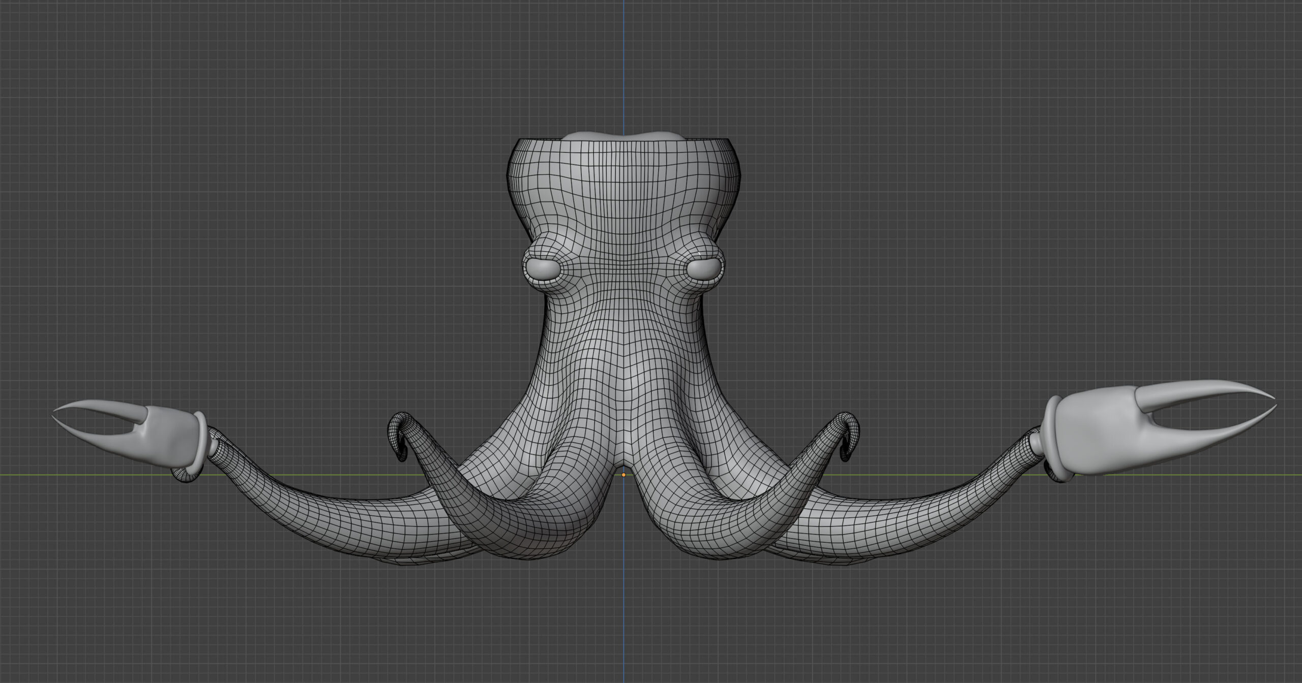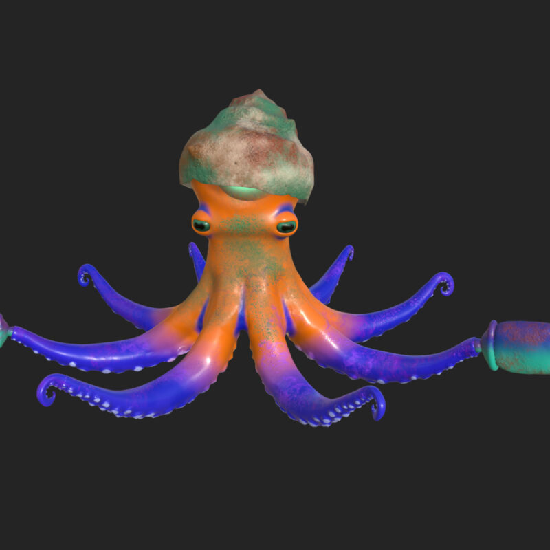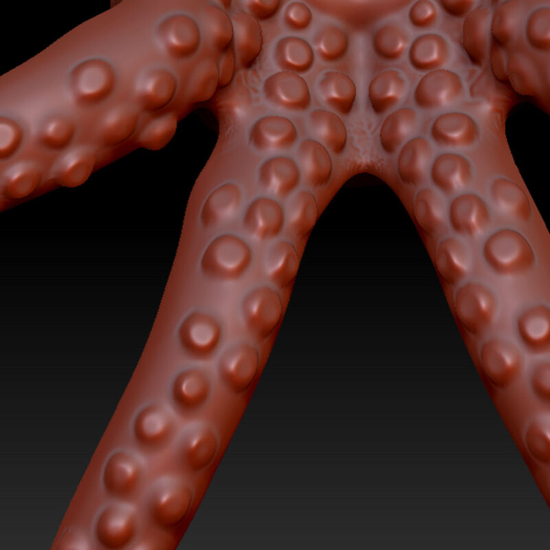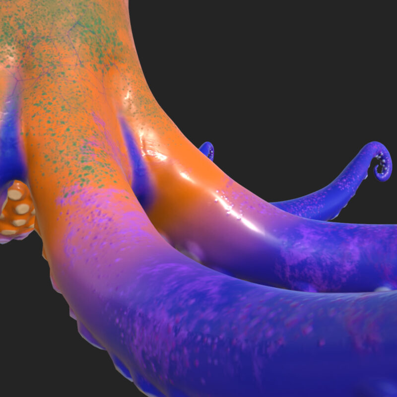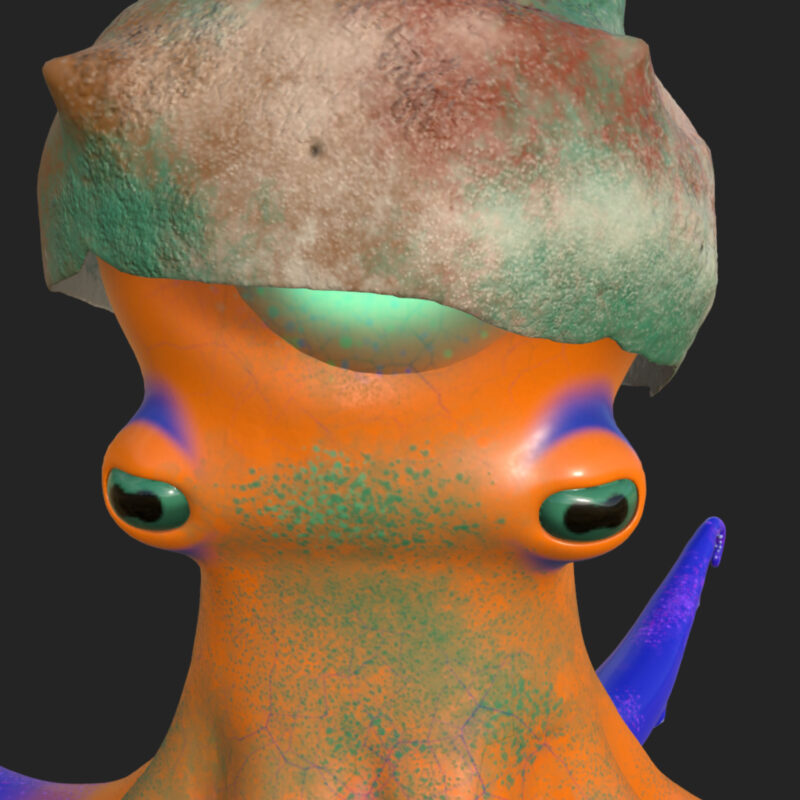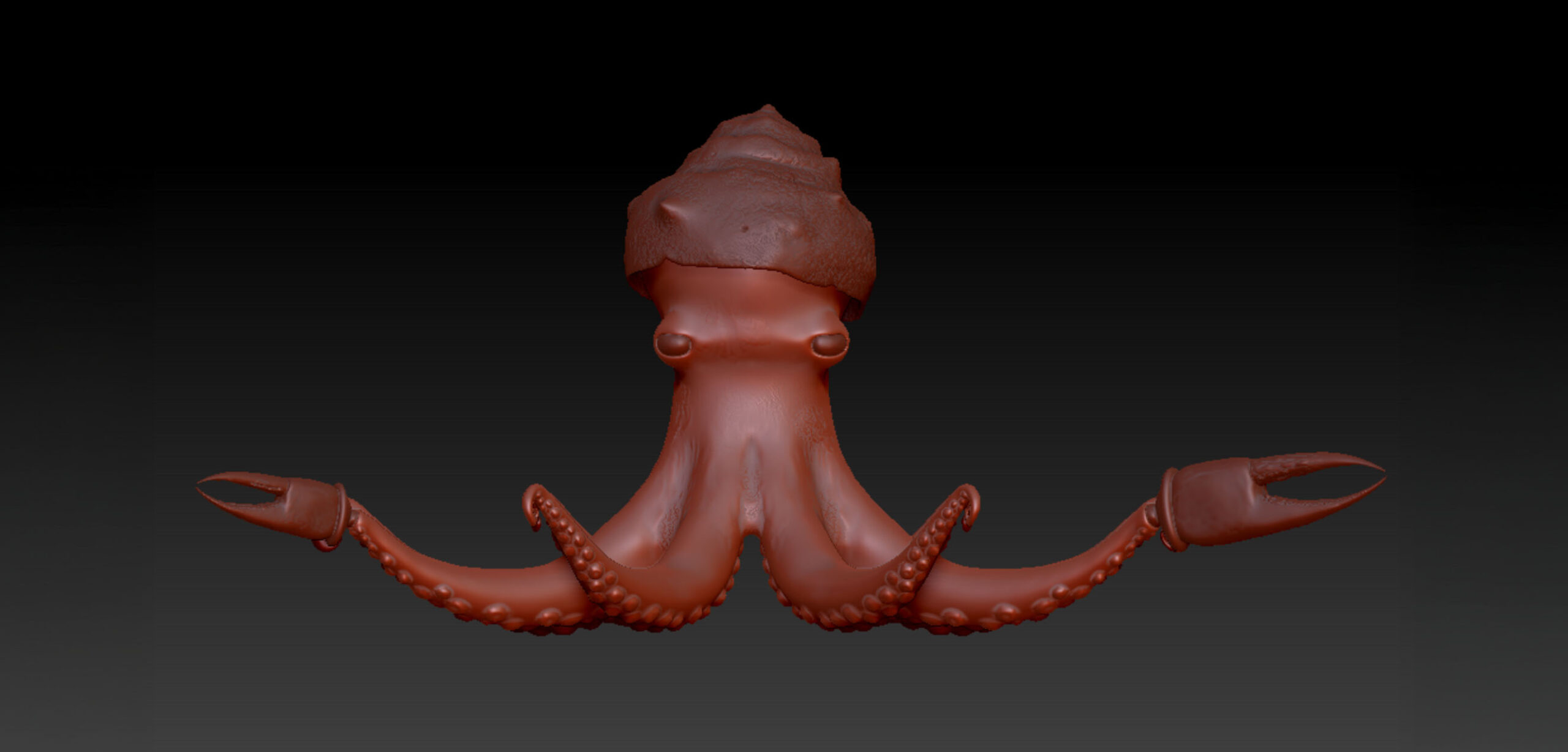 The main body of the creature, being the head and tentacles, was modelled and sculpted using dynamic topology, which allowed me to work more freely with the mesh, which was especially important from working with the tentacles of the creature.