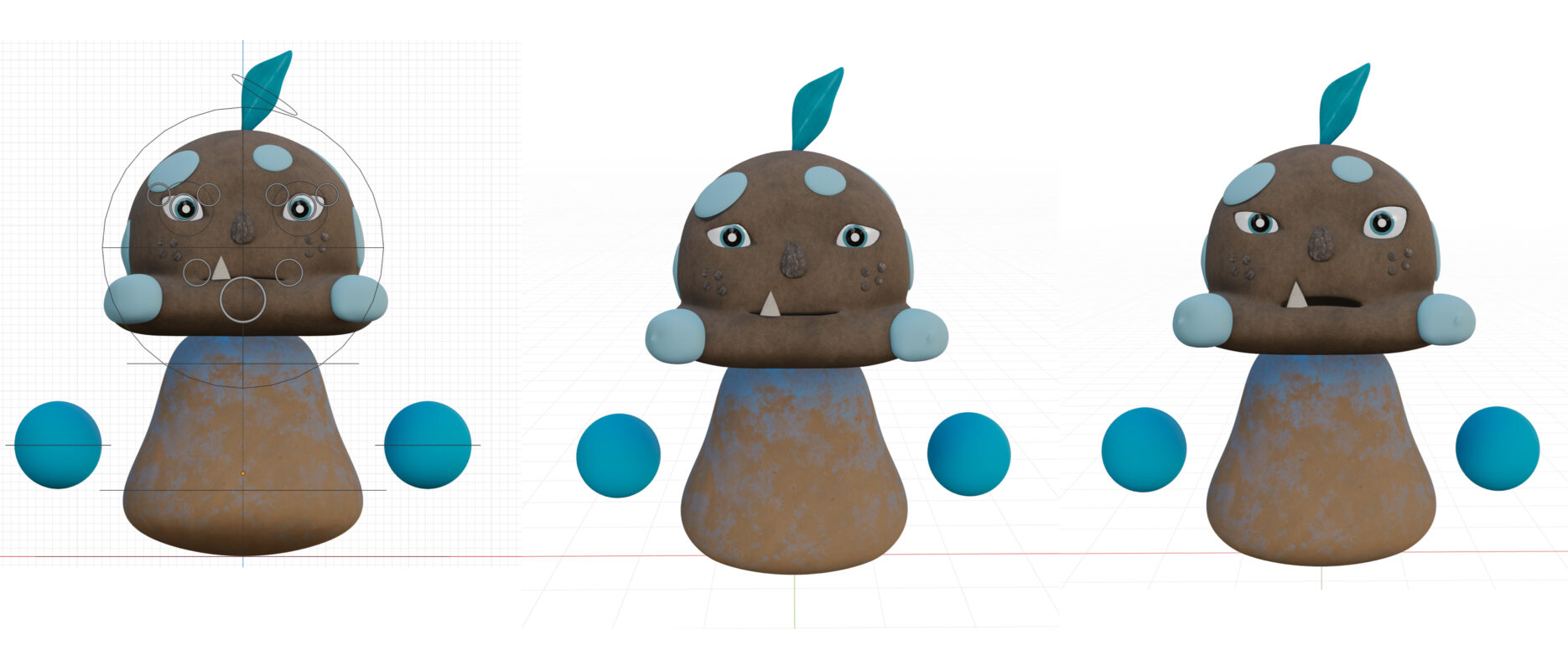 The character was rigged from scratch, including shape keys for facial expressions. Controllers were also used to ensure that the rig was easily understandable and accessible for the other members of the group.