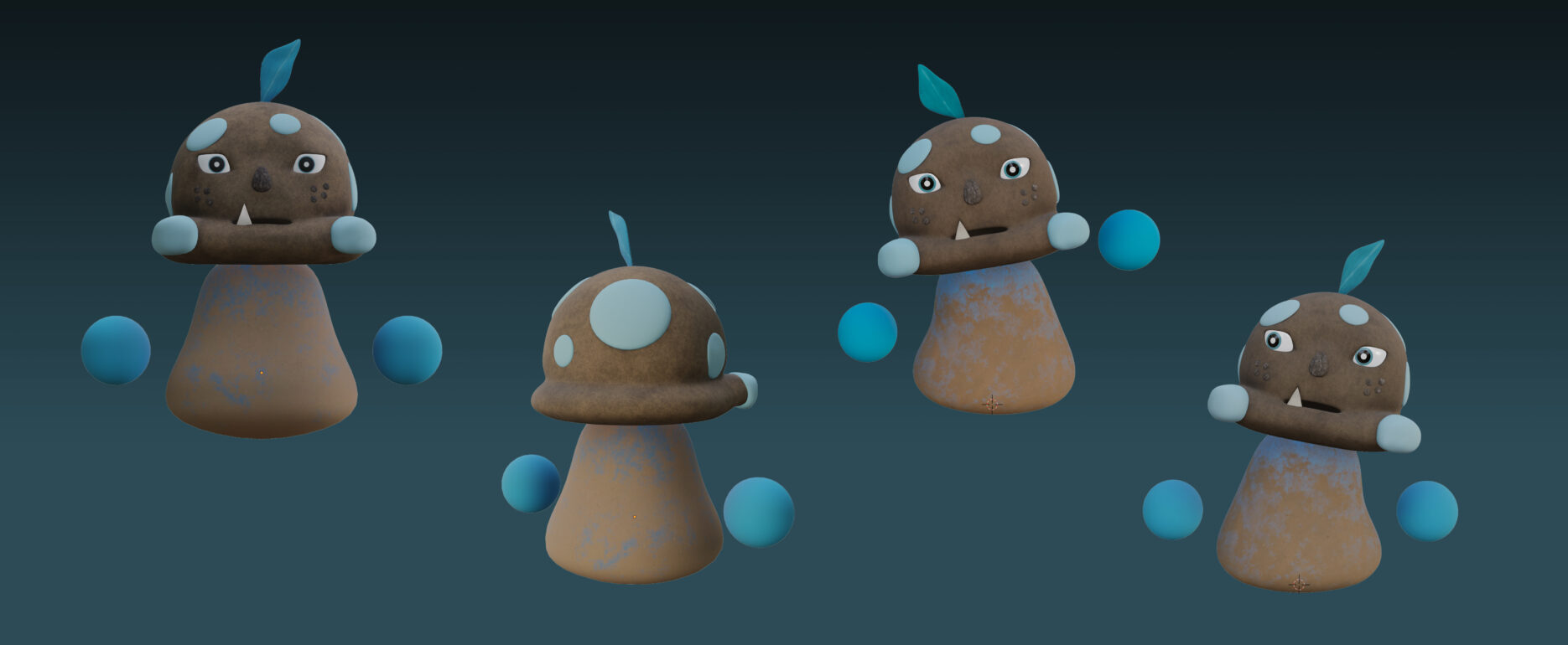 As the characters in this animation didn’t have legs, it was important to consider how the characters would be able to move realistically. Due to the characters looking like mushrooms, with a top-heavy build, I had the idea to have the characters jump, while swinging their heads to give momentum. As the characters were jumping instead of walking, it was important to ensure that the animation matched the distance covered, and that the body was leaning and stretching out appropriately.